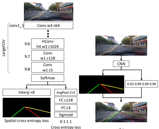 由于我们知道在交通道路上一般会出现类似于物体被垂直放在道路两边这样的空间关系,因此我们了解到加强空间信息的重要性。检测车道的情况也是类似的。