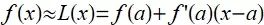再次, 已知函数 f 和特殊值 a, 我们找出通过曲线 y = f(x) 上点(a, f(a)) 的切线. 这条切线的斜率为 f'(a), 其方程为 y-f(a)=f'(a)(x-a), 如果设切线为 y=*L*(x), 则