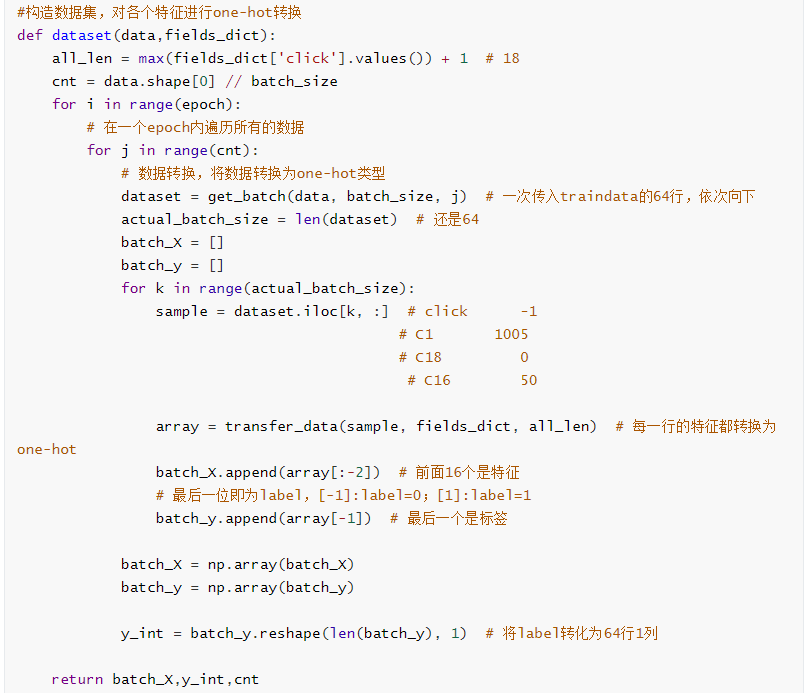 在进行训练之前需要先加载训练数据集,并将数据通过调用get_batch()函数,获得一个batch内传入的数据,再将每个batch内的输入特征通过transfer_data()转化为one-hot类型。