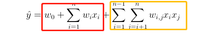 FFM是FM的变体,在开始介绍FFM之前,我们一起回顾一下FM的基本原理,FM使用分解参数对变量之间的所有交互进行建模,学习每个特征学习隐层向量,其输出公式如下: