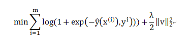 我们将FFM问题定义为分类问题,使用的是logistic loss,加入正则项后FFM优化目标为: