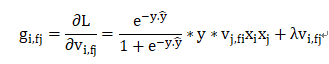通过梯度下降方法(SGD)可以有效地学习FFM的模型参数v_{i,fj},v_{j,fi}.