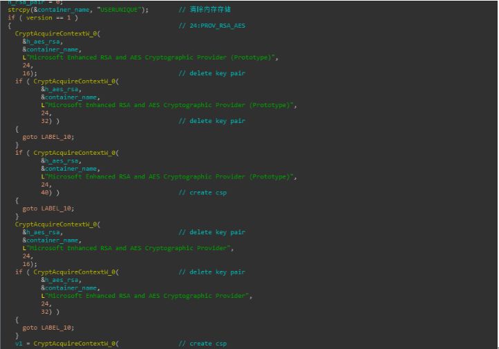 由于在以上这些系统中,生成的密钥对和密钥容器都会被存储在内存中。所以勒索病毒会额外清空一下内存中的密钥容器内容和密钥对,避免在内存中找到密钥对从而恢复被加密的文件。
