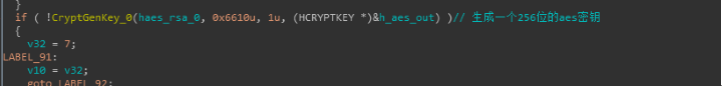 若未找到HERMES标记,就开始加密文件。加密开始前,病毒会先生成一个256位的AES密钥。