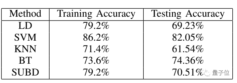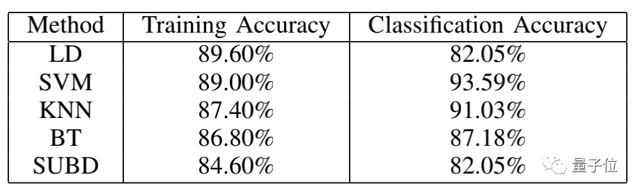 利用线性判别法(LD)、支持向量机(SVM)和子空间判别法(SUBD)*等训练分类器,并产生一个成分分类器的集合,用于构建新的组合分类器。