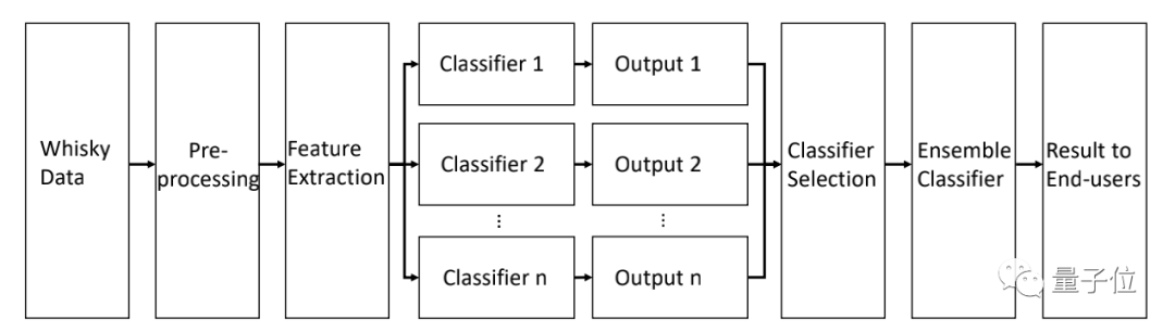 在特征提取后,对数据进行分类:将每一种威士忌的数据集随机洗牌,再进行80:20的分割,构建训练集和测试集。
