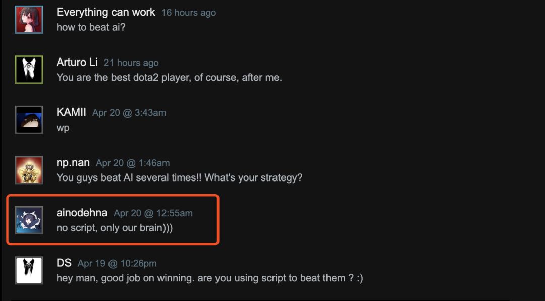 当网友问及他是不是用了脚本才打赢AI的,该玩家回答道:
