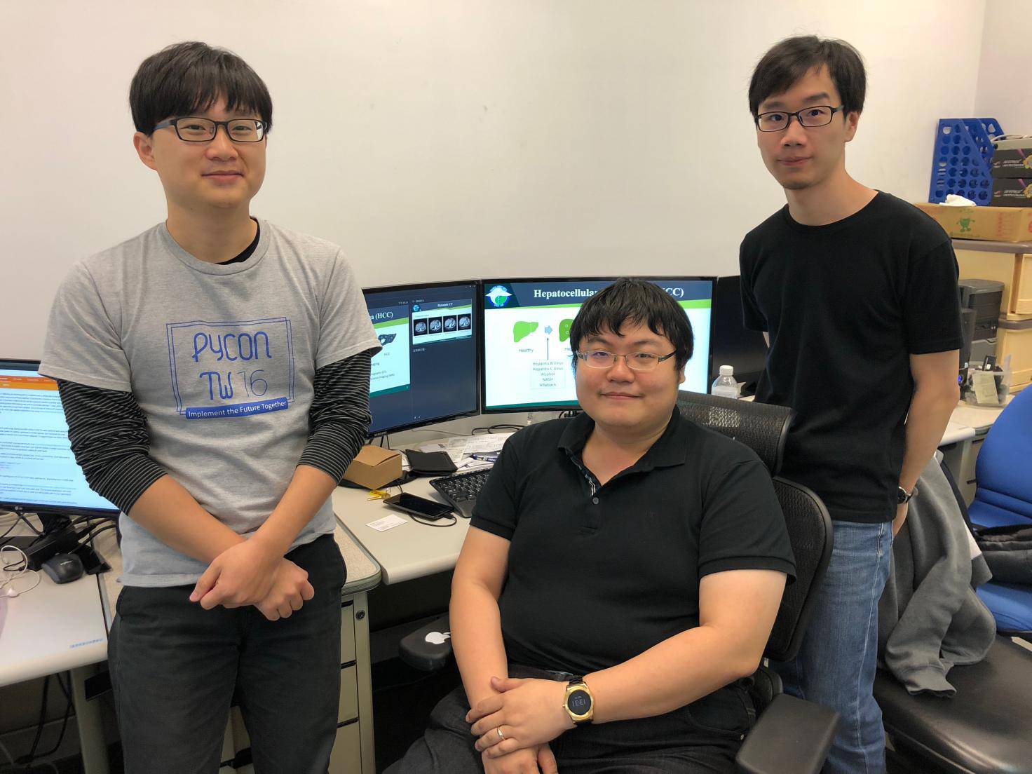 图|CMUH人工智能医学诊断中心副主任游家鑫(左)、人工智能医学诊断中心数据工程师廖英凯(中)、人工智能医学诊断中心数据工程师林仰贤(右)。(图片来源:DeepTech深科技)