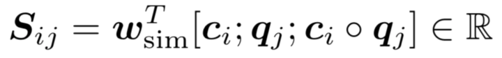 对于Context2Query Attention,我们想要知道对于每个context word,哪些query word比较重要,因此得到attention score及weighted vector: