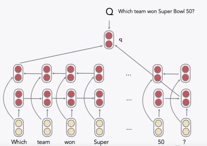 对于question部分,不仅仅是LSTM最后的输出,而是用了类似于self-attention的weighted sum来表示,并且增多了BiLSTM的层数。