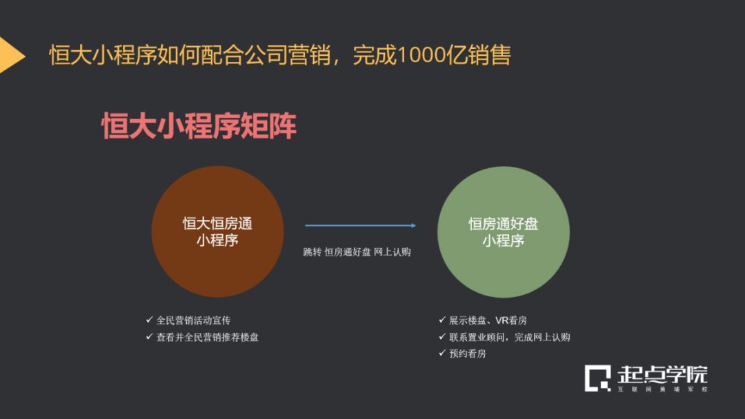 恒大发起的7折买房+推荐赚现金,也是利用小程序的裂变和无需下载特性,快速低成本的完成线上获客。整个2月份,恒大实现网上认购总套数99141套,房产总销售额1026.7亿。