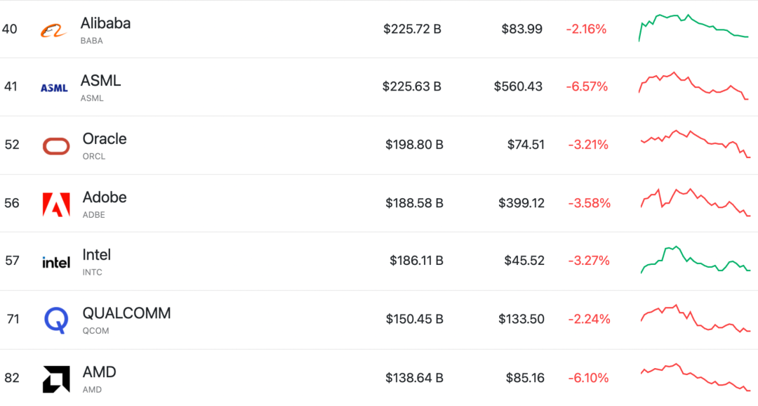 阿里基本上和光刻机一哥ASML平分秋色,分别是2257亿美元和2256亿美元。