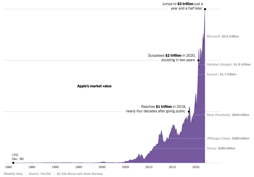 然而两年后的2022年,苹果的市值已经达到了26581亿美元。