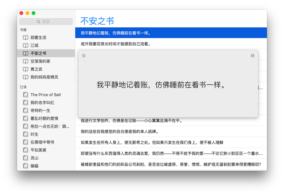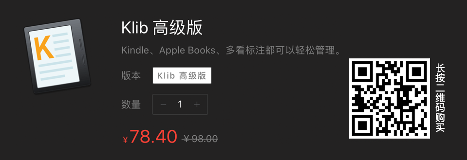 Klib 就像一个优雅的 Kindle「书摘陈列室」,你只需要将 Kindle 与 Mac 相连,初次打开时根据提示选择文件夹即可直接导入所有书摘。Klib 还支持从多看服务器直接导入书摘、在笔记中插入图片等操作。如果你想撰写书评,Klib 还为你提供了将笔记复制为 Markdown 的选项,你可以直接粘贴到编辑器进行二次加工。