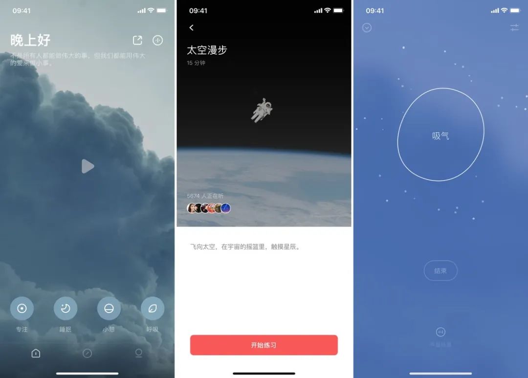 作为一款旨在帮助用户「放松下来」的应用,潮汐俨然已经成为许多人手机里常驻的应用。得益于多年的累积,潮汐拥有十分丰富的白噪音资源和冥想练习,无论是在工作时播放一段背景音,还是给自己做一次「大脑体操」,潮汐都能帮你完成。