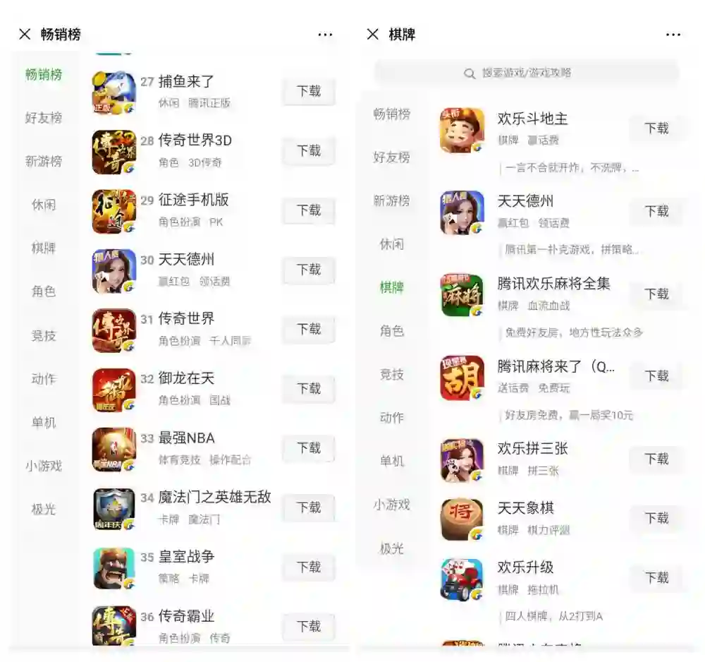 目前,这款游戏在微信游戏畅销榜上排名第 30,而在棋牌榜则是位居第二,仅次于《天天斗地主》。