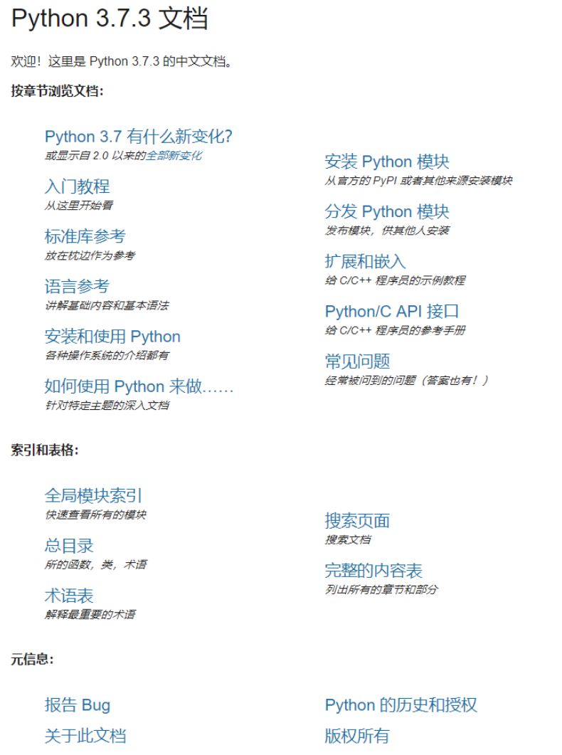 但在地址栏中手动键入 zh-cn,即:https://docs.python.org/zh-cn,就能看到官方的中文文档了。因为 Python/C API 接口等高阶内容还是英文,所以很可能目前中文文档还在完善中,并没有完全开放。