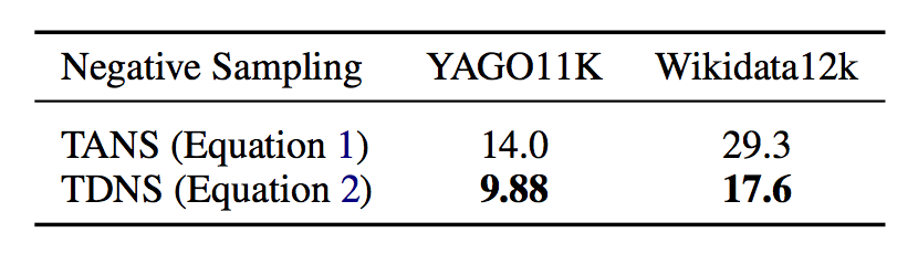 eh,et,er,分别表示三元组中头实体,尾实体以及关系所对应的向量表示,τ1 和 τ2 分别表示此三元组有效成立时间段的起始时间与截止时间。eh(τ1), er(τ1) 以及表示各向量在时间超平面 τ1 上的投影,最终,模型通过最小化翻译距离来完成结合时间的实体与关系 embedding 学习过程。