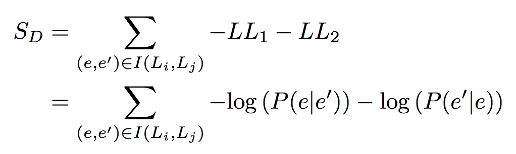 DEM 的目标是最大化各个实体描述 embedding 与对应的其他语言版本之间的 log 相似度,故可以将目标函数描述如下: