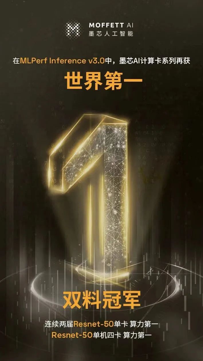 来自中国的 AI 芯片企业 —— 墨芯人工智能,凭借软硬协同的稀疏计算技术,在 MLPerf 竞争最激烈的 ResNet50 模型上蝉联冠军,斩获开放任务分区 “双料冠军”:S40 计算卡以 127,375 FPS,获得单卡算力全球第一;S30 计算卡以 383,520 FPS 算力,获整机 4 卡算力全球第一。