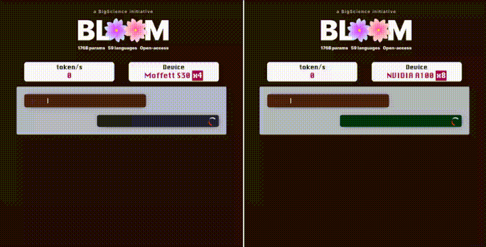 实测:在 1760 亿参数的 BLOOM 上,4 张墨芯 S30 计算卡的内容生成速度达到 25 tokens/s,超过 8 张 A100