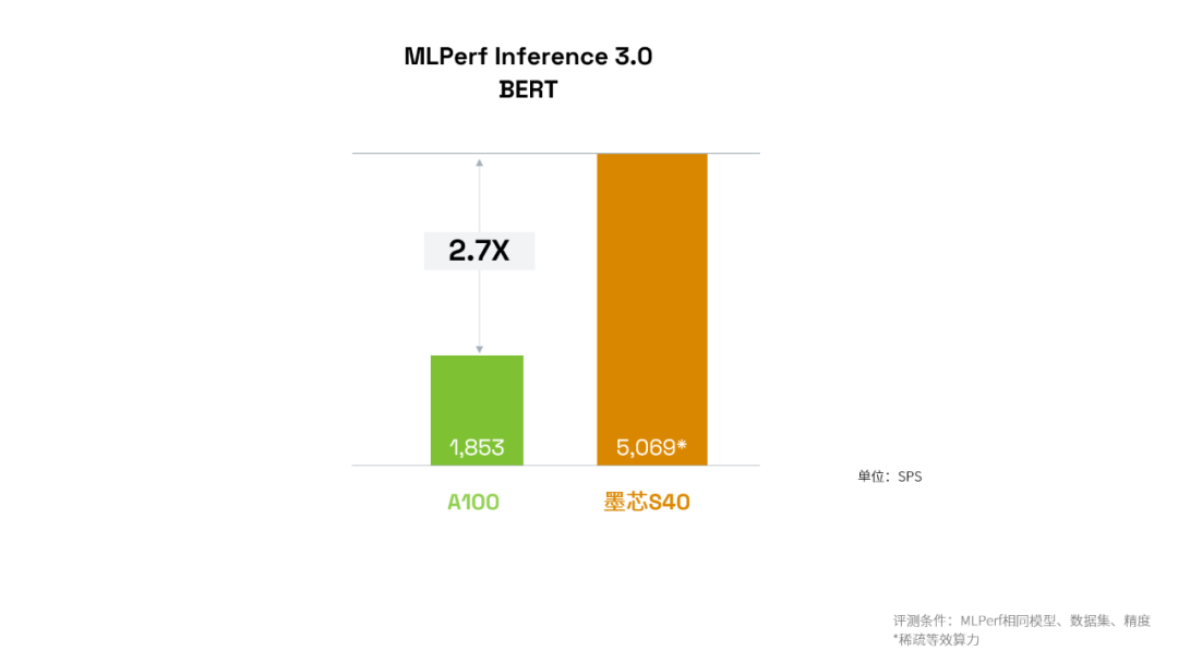 刷新算力纪录:墨芯 S40 计算卡首次亮相 MLPerf,在数据中心的图像任务主流模型 ResNet-50 上夺得冠军,算力达 127,375 FPS。S40 计算卡性能达英伟达 H100、A100 的 1.4 倍和 2.9 倍。