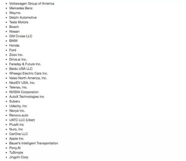 机器人技术的核心是运动控制,包括定位、导航、感知、决策、跟踪等,可广泛应用在家庭服务机器人、工业自动化机器人等领域。 自动驾驶是人工智能领域最炙手可热的方向,互联网巨擎(谷歌、Uber、百度等)、传统汽车大厂商、 Tier1供应商以及很多初创公司都纷纷投入到这场全新的交通运输生态的创建中。截止2017年6月18日以来,共有34家公司获得美国加州路测资格,其中中国背景的公司就有9家。