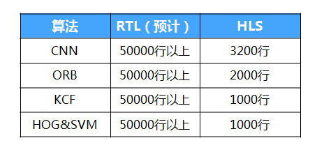 下表是两种开发方式下的代码行数对比,其中RTL方式没有实际编码,但是从以前的开发经验和算法复杂度来看,每个算法至少是50000行以上的代码规模,与HLS方式相比相差了不止一个数量级。