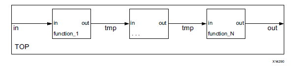 Dataflow是另外一种在函数之间进行并行优化的方式。下图是没有进行Dataflow并行计算优化的模块,函数间依次处理一组数据,所有处理流程结束后,input接口才会允许进行下一组数据。