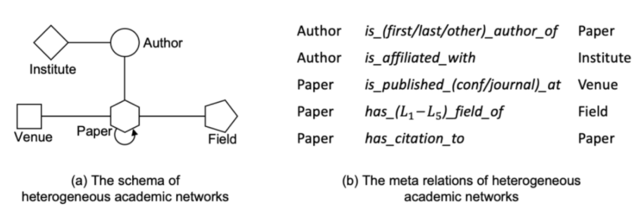 本文主要提出一种处理异构图的方法,所谓异构图(Heterogeneous graph)是指在一个图中会出现不同类型的边和节点的图。早期对于图的处理图的方法一般集中于同构图的处理。近年来开始关注对异构图的处理,但是一般都具有以下缺点: