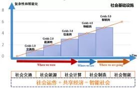 王研究员: 网络化带来了网络系统赛博化、工程系统社会化、社会系统工程化,这“三化”让简单的事物变成了复杂的事物,改变了我们的工作方式,即从小5G跳到大5G。 大5G(Grids)的第一个G就是交通网(Grids 1.0),然后是能源网(Grids 2.0)、信息网(Grids 3.0),发展到今天是物联网(Grids 4.0),在人类的主导下,下一步将发展的是智联网(Grids 5.0)(如图10所示)。 如此发展下去,社会形态将完全转变为智能社会(即社会运作+共享经济)。