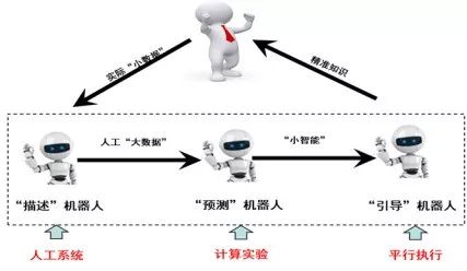 王研究员: 我相信,用知识机器人来指挥人、控制人将是未来的工作方式。 如图18所示,当雇一个人类职员时,需要给他配三个机器人: 一个是“描述”机器人,负责告诉他这个岗位是干什么的; 一个是“预测”机器人,负责告诉他会发生什么事情; 一个是“引导”机器人,负责告诉他最佳实践是什么。 机器人是铁打的营盘,人是流水的兵,因为人会退休或辞职,但机器人会牢牢守在岗位上,他们不会死,人类只需要给这些机器人喂养“粮食”而已,信息就是粮食,人类给机器人提供不定性、多样性、复杂性的信息,机器人就会把这些信息内化成它的敏捷性、向问题聚焦的能力、向目标收敛的能力,它把“小数据”导成“大数据”,再把“大数据”炼出“小智能”,就像AlphaGo一样,机器人将扩展并给予人类“真正”的智能。