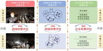 在军事行动的效果评估方面,需要综合利用物理世界评估、心理世界评估和人工世界评估(如图23所示)。 美国已经把物理损害评估(PDA)做到了极致,可以完成90%的物理损害评估,现在,美国已经开始研究网络损害评估(CDA)和社会损害评估(SDA)。