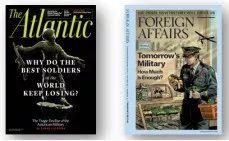 曾经提出“互联网”“物联网”源头思想的美国文科领域著名杂志《The Atlantic》发表过最深刻的科技文章,二年前提出一个封面问题: “为什么世界上最好的战士不断打败仗? ”《FOREIGN AFFAIRS》杂志封面文章也发出提问: “未来的军事是什么? ”(如图3所示)。