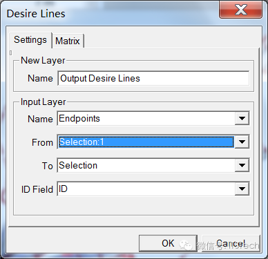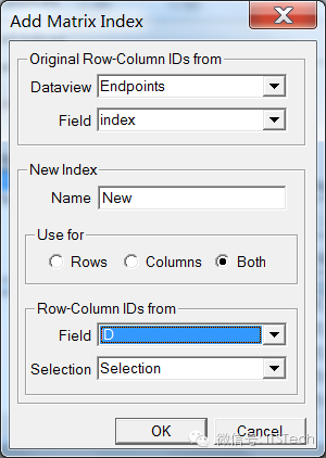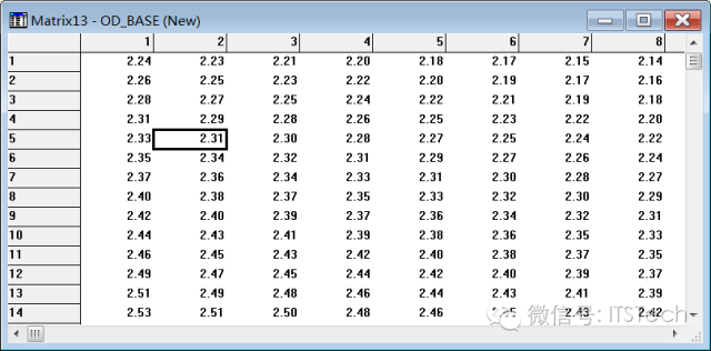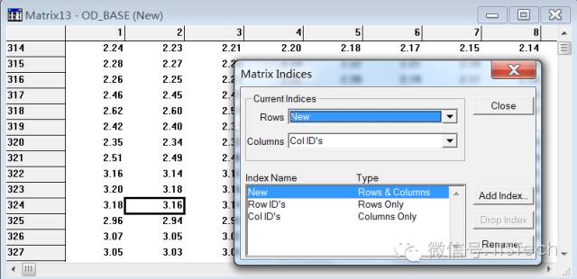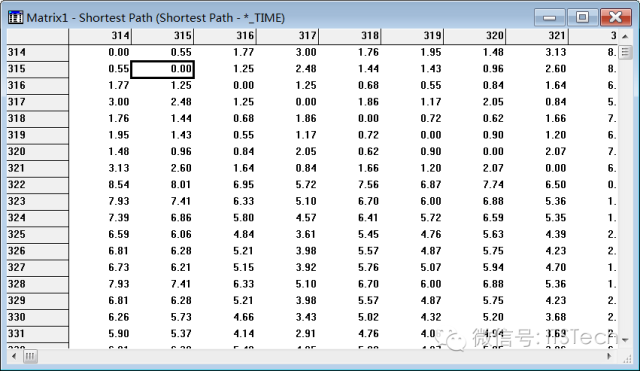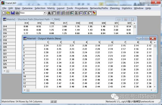 (3)创建新OD表,File-New-Matrix,行列均选择Selection集数据,保存为一个新矩阵。