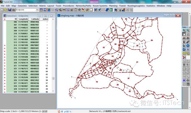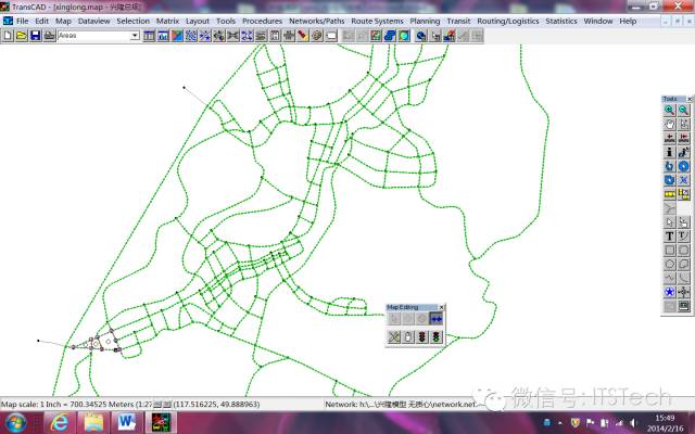 创建交通模可以用手工方式或导入其它电子数据两种方式。手工方式就是使用使用位图做为底图,使用TransCAD的编辑功能建立模型;导入数据创建模型,就是利用TransCAD的转换工具,直接导入可识别的电子地图,然后再利用TransCAD的编辑功能添加需要的属性。