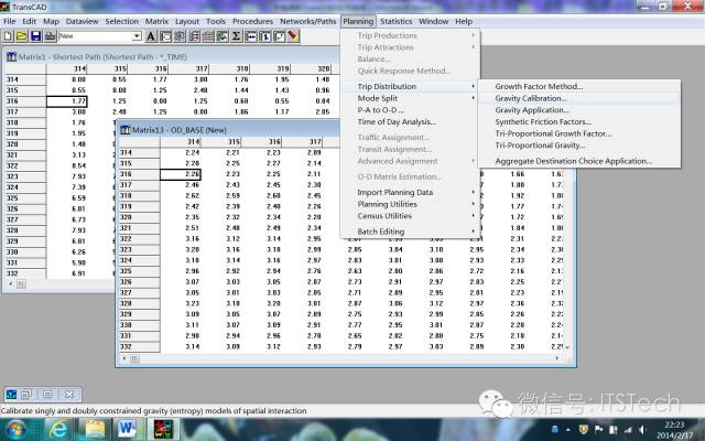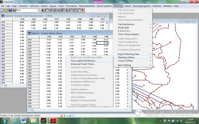 选择菜单Planning/Planning Utilities/Trip Length Distribution;