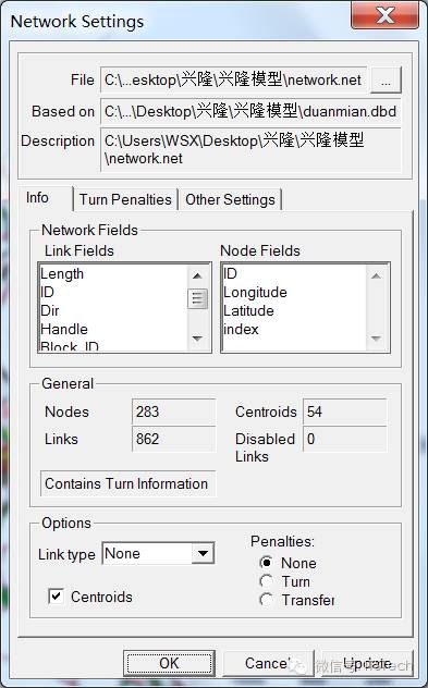 选择 Network/Paths > Turn Penalty Toolbox,弹出Penalty Dataview 对话框。