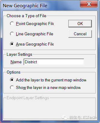 点选菜单File/New,打开New File窗口,选择Geographic File点击OK按钮;弹出New Geographic File对话框,选择Line Geographic File, 点击OK按钮。
