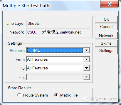 单击 OK 返回 Traffic Assignment 交通分配对话框: