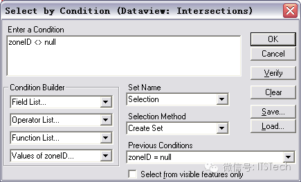 (2)关闭对话框,选择点层,Selection-Select by Condition,选择全部内部小区(zoneID不为空),即包括新增OD节点在内。