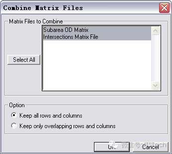 (4)打开上一步中保存的矩阵和模型中所给矩阵MMA_sub_OD,将两个矩阵合并:点击Matrix-Combine…