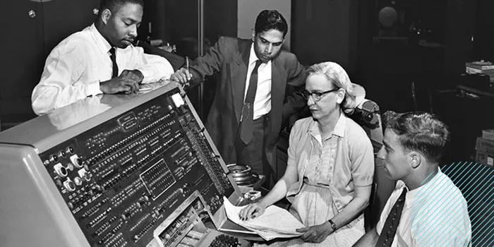 计算机科学家Grace Hopper 正在指导一个开发早期 COBOL 应用程序的团队