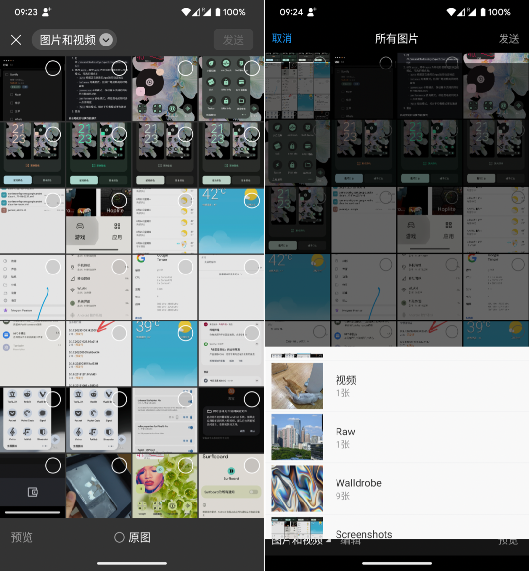 虽然交互体验相近,Android 13 的照片选择器和 iOS 的相比是有差异的。