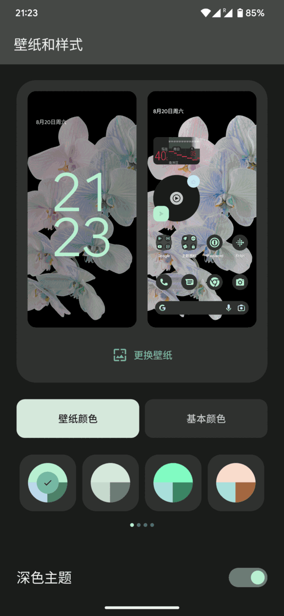 当你为手机换上一张喜欢的壁纸时,整个系统都会因为你的喜好而发生一些微妙的变化,壁纸的差异、取色结果的不确定性,将原生 Android 一直以来所坚持的那种定制化和个性化带到了一个新的高度……