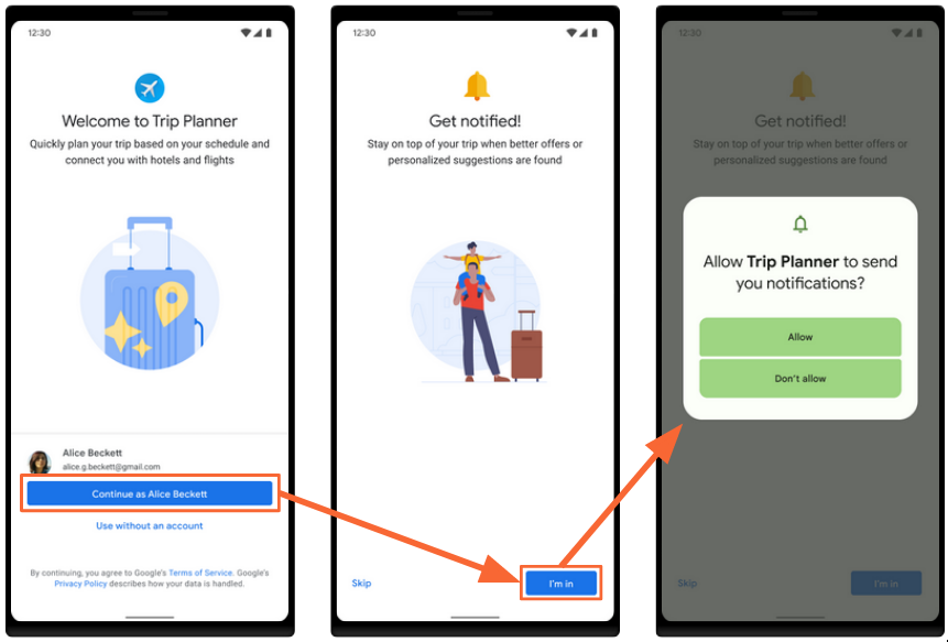 所以在 Android 13 中这个功能就来了,只不过具体的操作办法上和 iOS 的「强制二选一」有所不同:除了「允许」「不允许」两项之外,用户还可以划走权限申请对话框。简单来说,运行时权限虽然是一个 Android 13 的新特性,但适配了 Android 13 的应用(target API 33)仅仅是获得了自定义弹出权限申请对话框的时机这一优势,配合清晰直观的用途说明,想要合理推送通知的 app 不用过多担心用户不给许可。