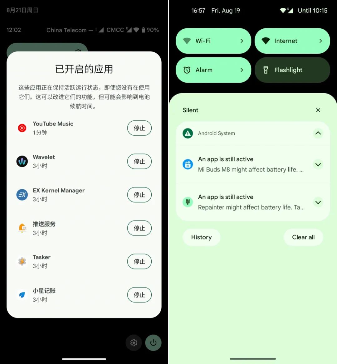 应用除了通过通知来吸引机主的注意力,还可以借它获取更多系统资源。在 Android 系统的设计中,前台服务主要有两大特点:即使用户停止与应用的交互,仍能继续运行;执行过程中必须显示通知。后者是很多「毒瘤」应用保活的常见手段,近年来随着定制系统「杀后台」问题突显,也为不少常规应用所用。