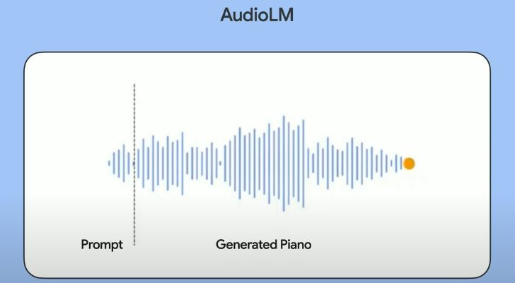 以及 AudioLM,一个无需文字和音乐符号训练,仅通过聆听音频样本,就可以继续生成填补乐曲的音频模型。