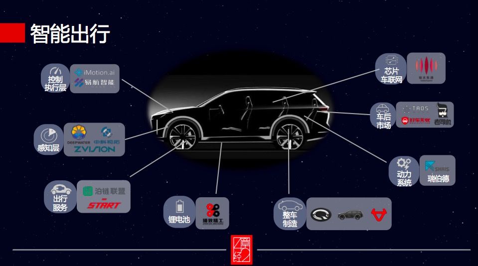 所以,这也是为什么我们这类早期基金,在车和家的每一轮融资上都持续加注的原因。同时我们在整个智能电动车和自动驾驶的产业链上,如下图所示,从电池的生产加工技术到自动驾驶的核心零部件、激光雷达、再到车载的以太网芯片,已经持续布局了 20 家公司。