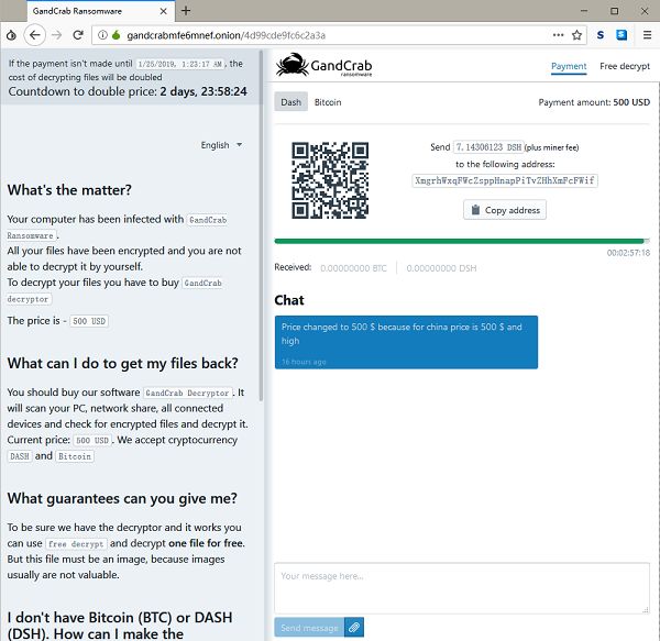大意就是你的电脑文件已经被加密了,按照他的要求去暗网支付赎金换取解密。它这比当年 WannaCry 的支付手段更加隐蔽。